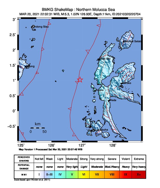 TERNATE, Opsinews.com – Gempa bumi bermagnitudo 5,3 SR mengguncang Kota Ternate, Maluku Utara, Minggu (21/3) dini hari pukul 00.02 WIT.