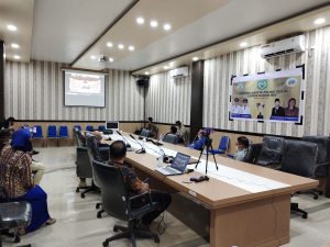 Bupati dan unsur OPD sedang mengikuti Daring penerimaan penghargaan KLA. (Ft/Ist)