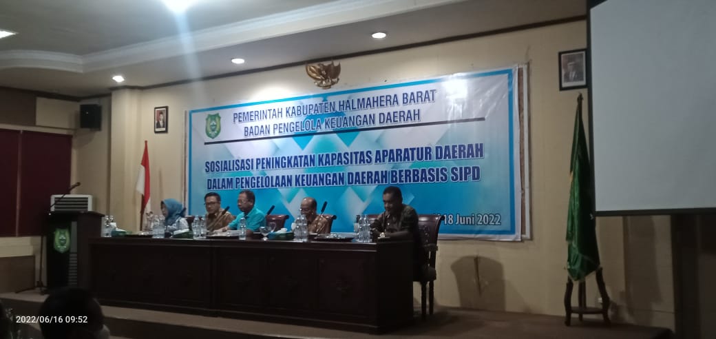 JAILOLO, Opsinews.com – Badan Pengelolaan Keuangan Anggaran Daerah, Pemerintah Kabupaten Halmahera barat, Maluku Utara, melaksanakan kegiatan “Sosialisasi Peningkatan Kapasitas Aparatur Daerah Dalam Pengelolaan Keuangan Daerah Berbasis SIPD” Kamis, (16/6).