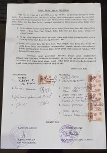 Surat pernyataan kesepakatan penyelesaian, foto: istimewa.