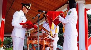 Wakil Bupati Resmi menerima bendera merah putih. (Foto: Opsinews.com)