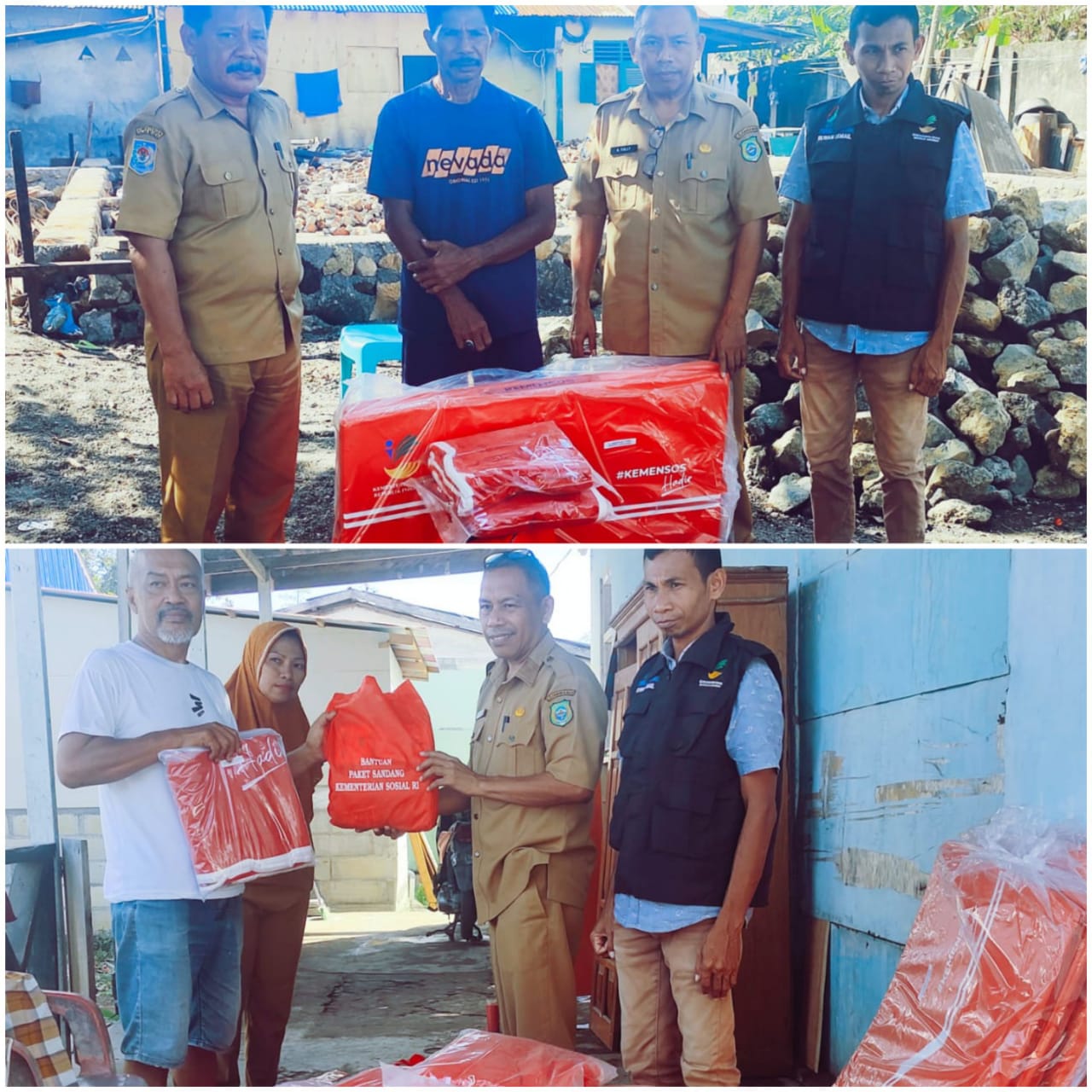 Penyerahan langsung dilakukan oleh Kepala Dinas Sosial dan P3PA terhadap korban angin puting beliung dan rumah terbakar yang bertempat di desa Hatebicara dan desa tedeng.