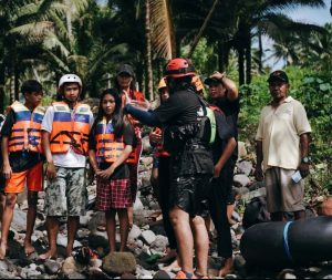 Peserta river tubing saat mendapat arahan instruktur (foto: OpsiNews).