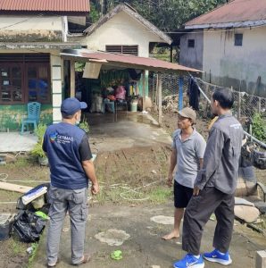 Ketua IAI Halmahera Barat (Suseno) dan pengurus mengunjungi serta memberikan dukungan sosial kepada kerabat se profesi yang dilanda musibah banjir di kecamatan ibu.
