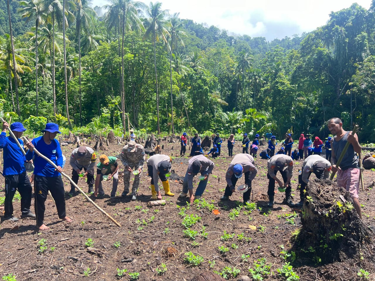 OpsiNews – Lahan Perkebunan Desa Moloku Kecamatan Gane Barat Utara Kabupaten Halmahera Selatan, Maluku Utara. Polsek Gane Barat beserta jajaran menghadiri Kegiatan Penanaman Jagung Hibrida oleh Kelompok Tani Desa Moloku Kecamatan Gane Barat Utara Pada hari Rabu Tanggal 04 Februari 2026.